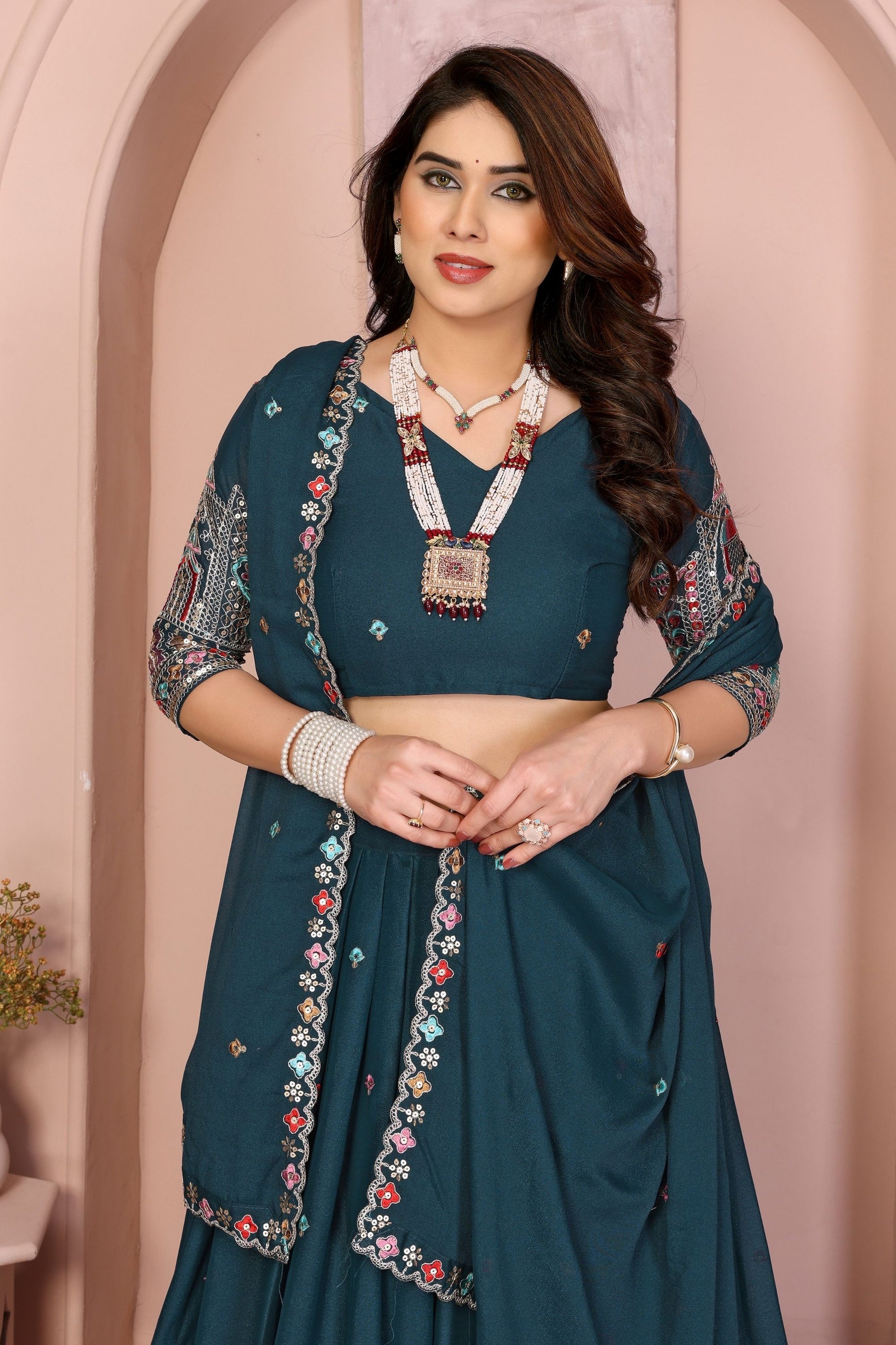 Teal Blue Embroidered Lehenga Choli with Dupatta Silk Blend Traditional Festive Wear