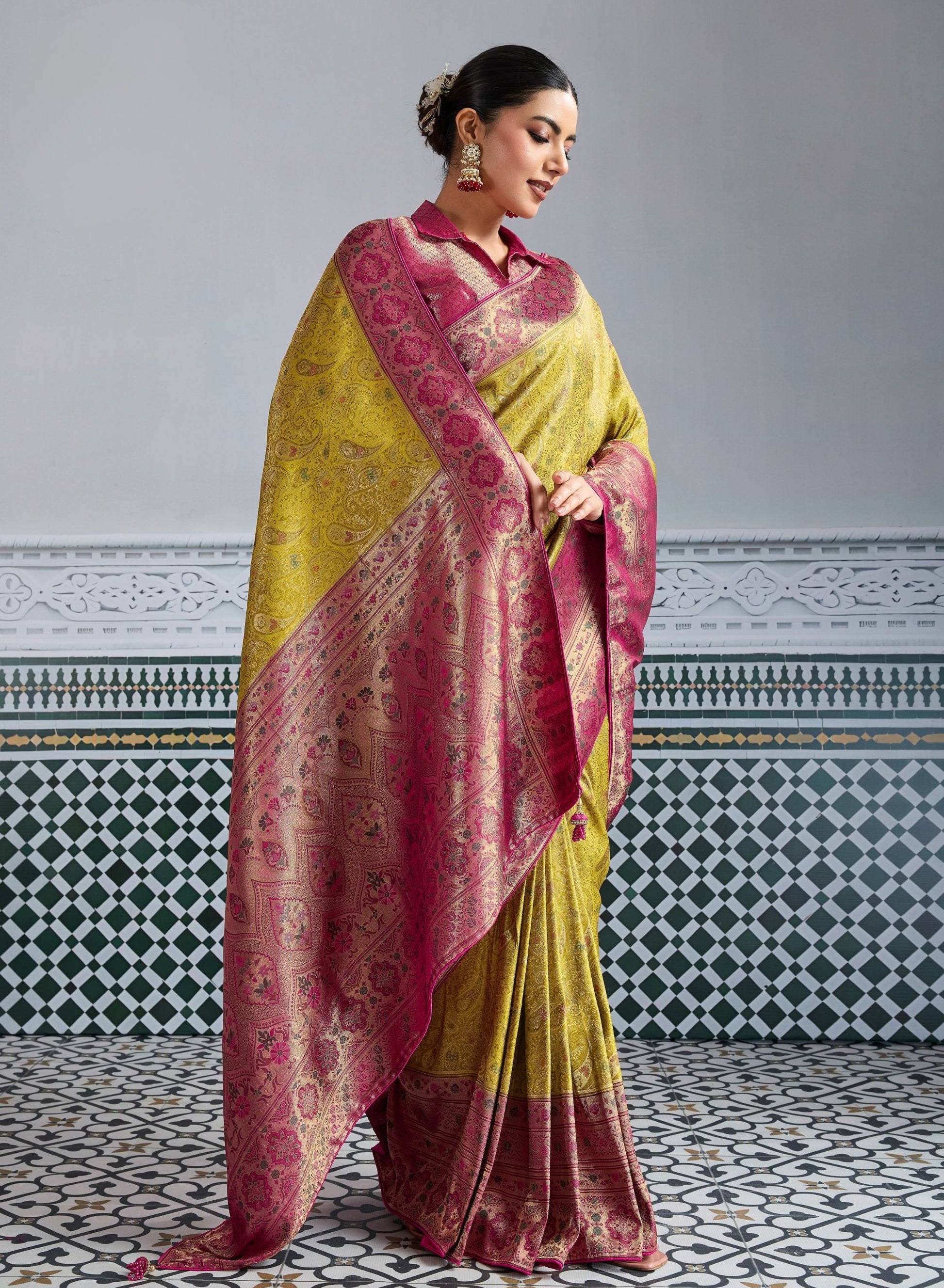 Traditional Banarasi Silk Saree in Mustard Yellow Border Designer Blouse