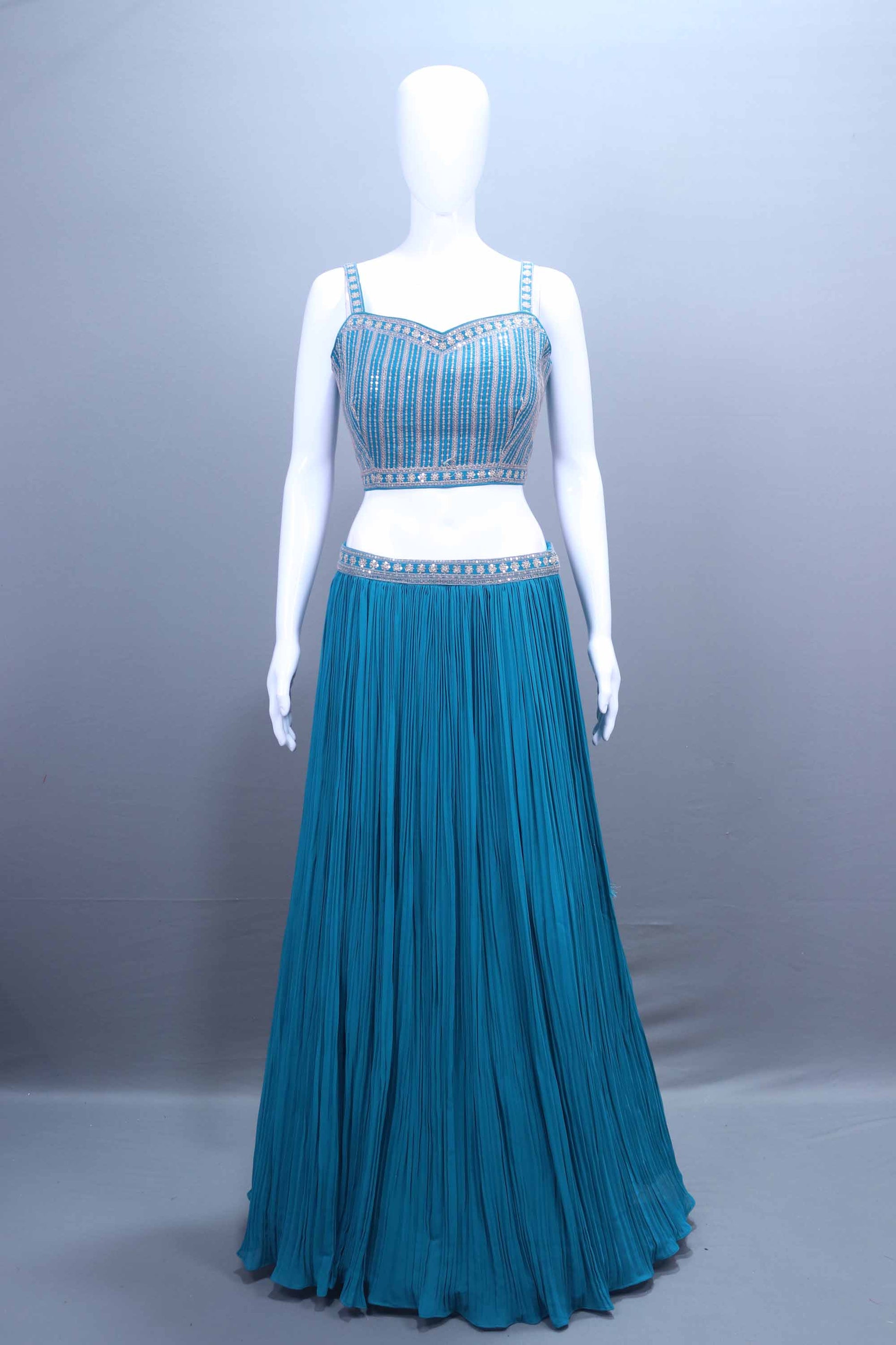 Traditional Blue Crop Top Silver Detailing Perfect Festive Occasions