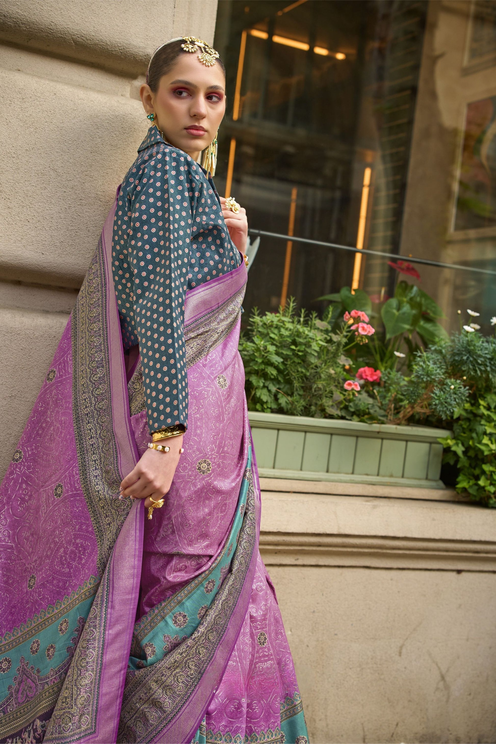 Traditional Pink Teal Banarasi Silk Saree and Rich Pallu