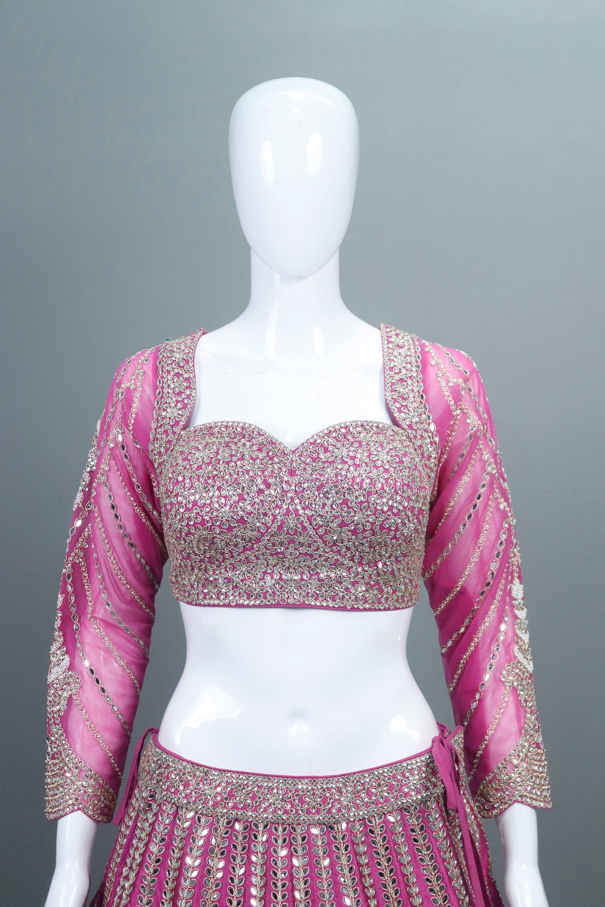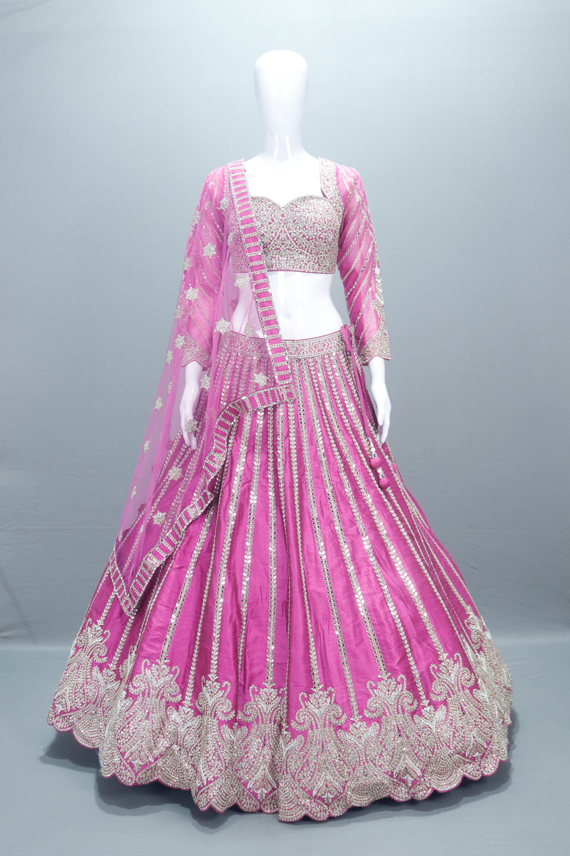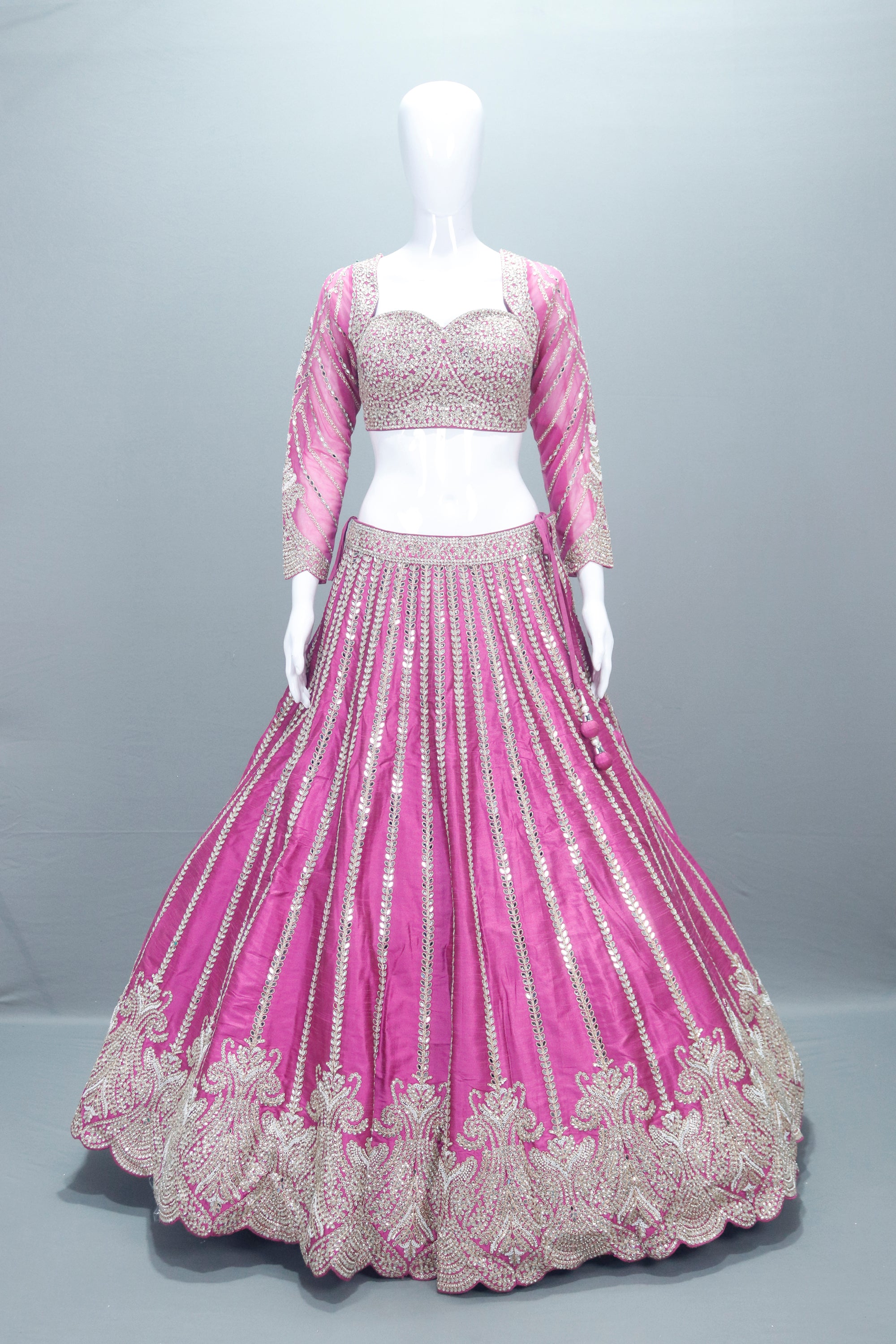 Violet Bridal Lehenga Choli Sheer Dupatta Designer Party Wear