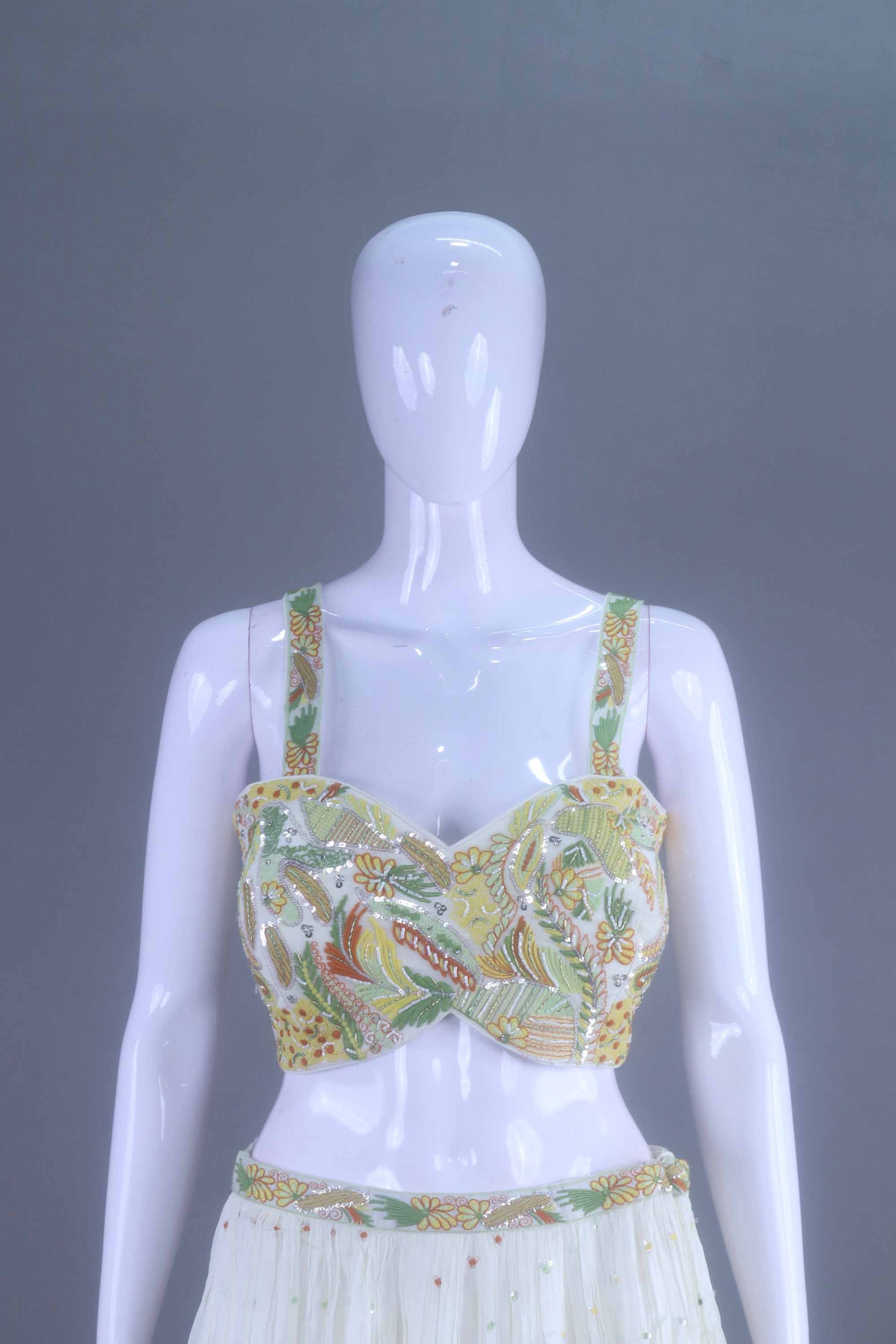 White Embroidered Lehenga Choli with Stylish Jacket Party Wear