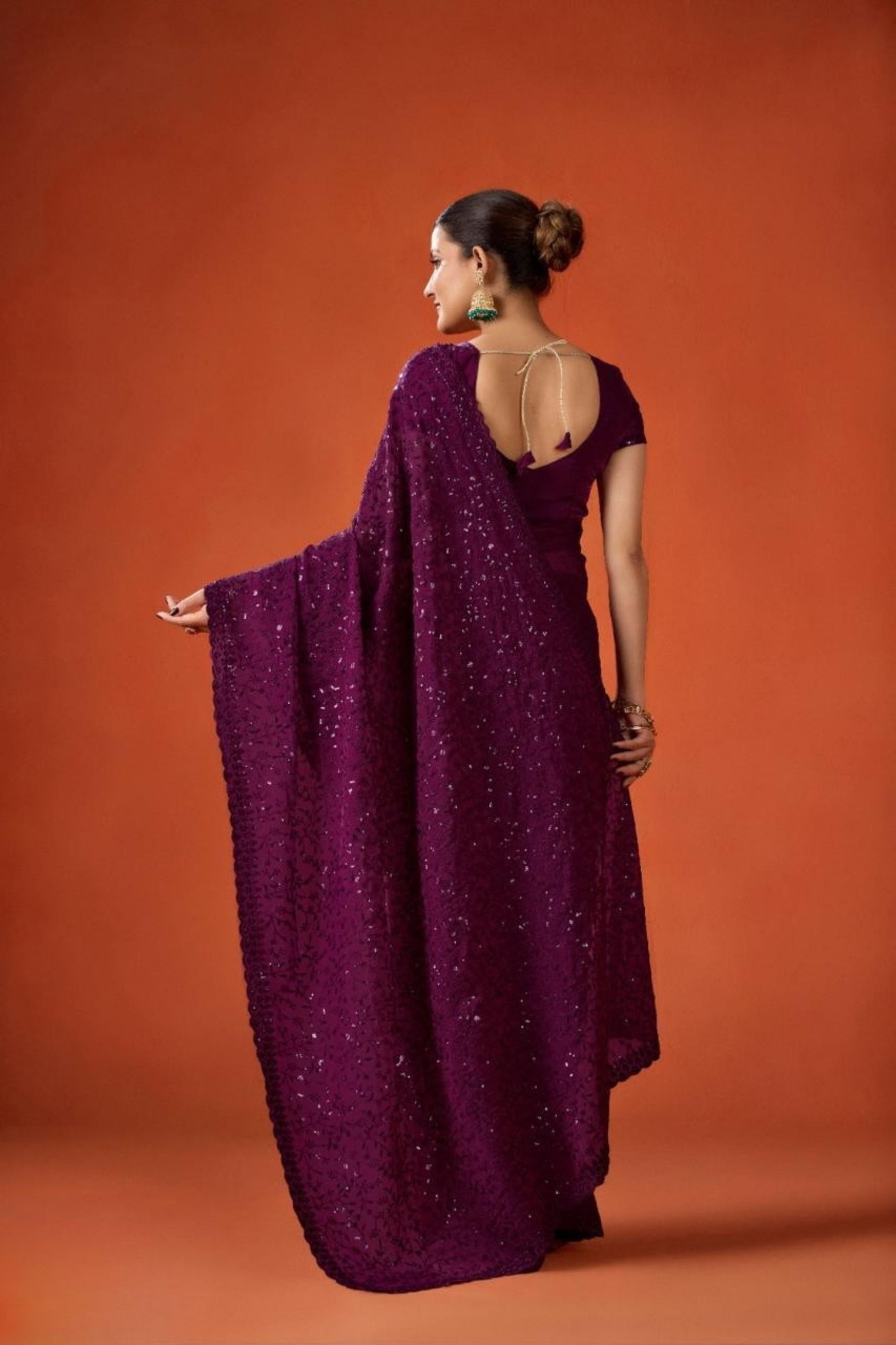 Wine Purple Embroidered Saree with Matching Blouse Party Wear Saree