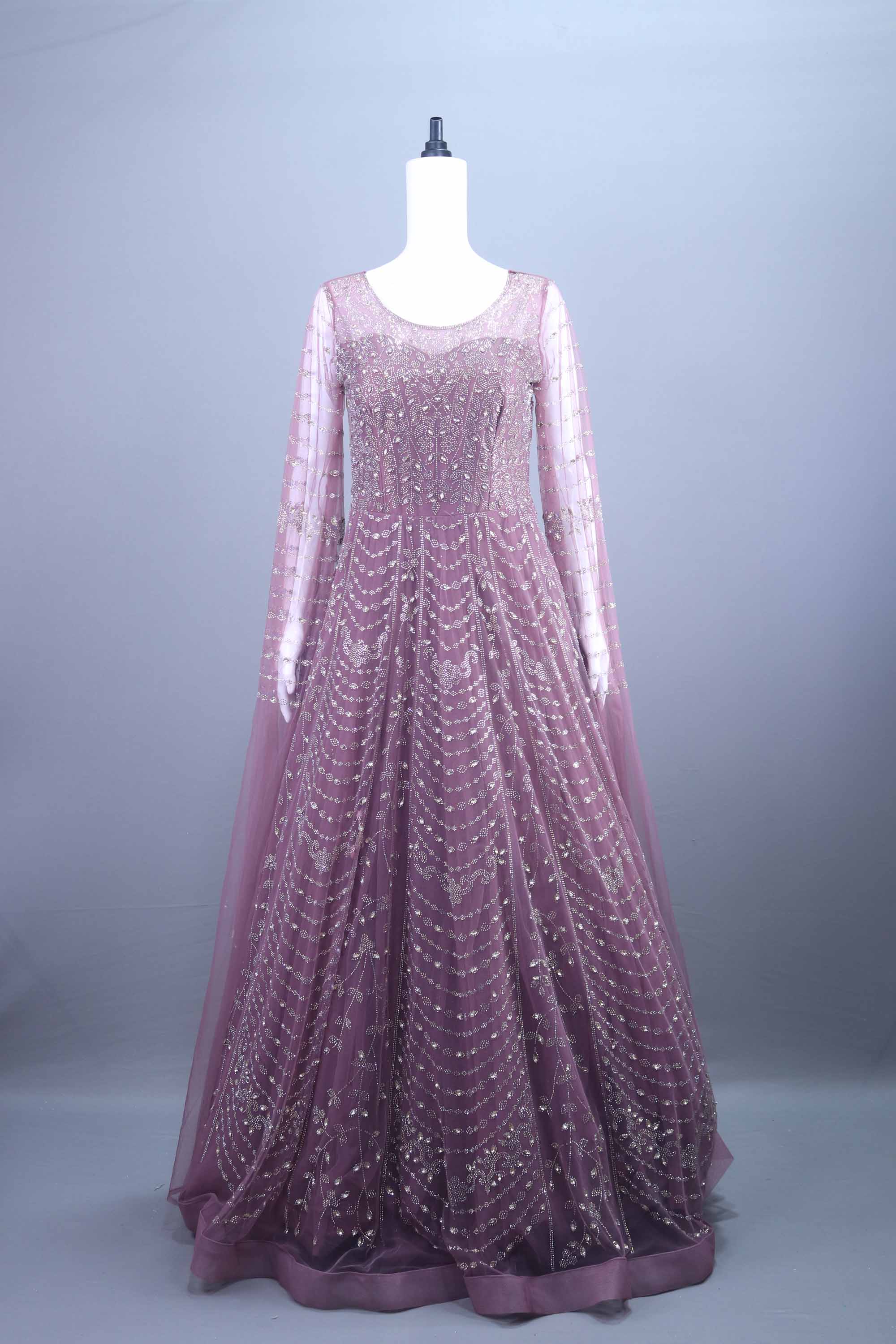 Wine Purple Heavy Embroidered Net Anarkali Gown with Dupatta