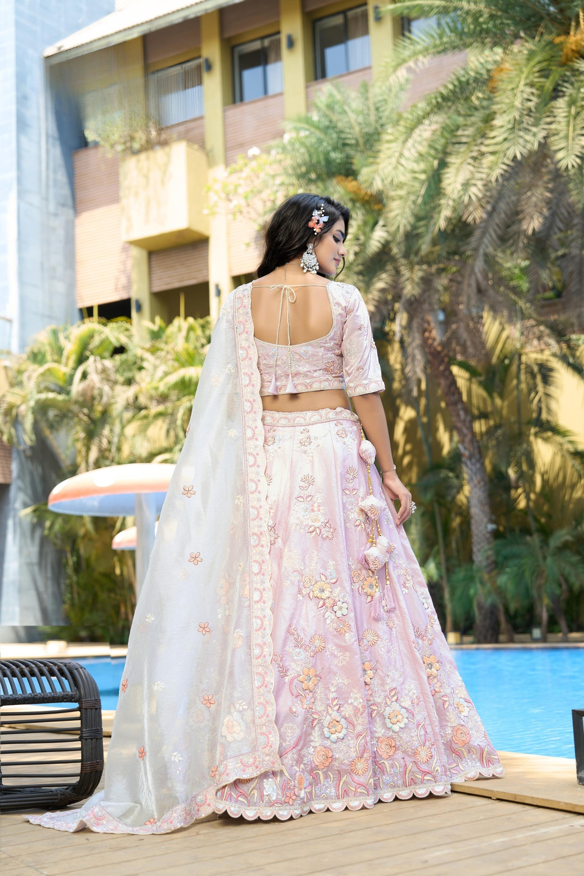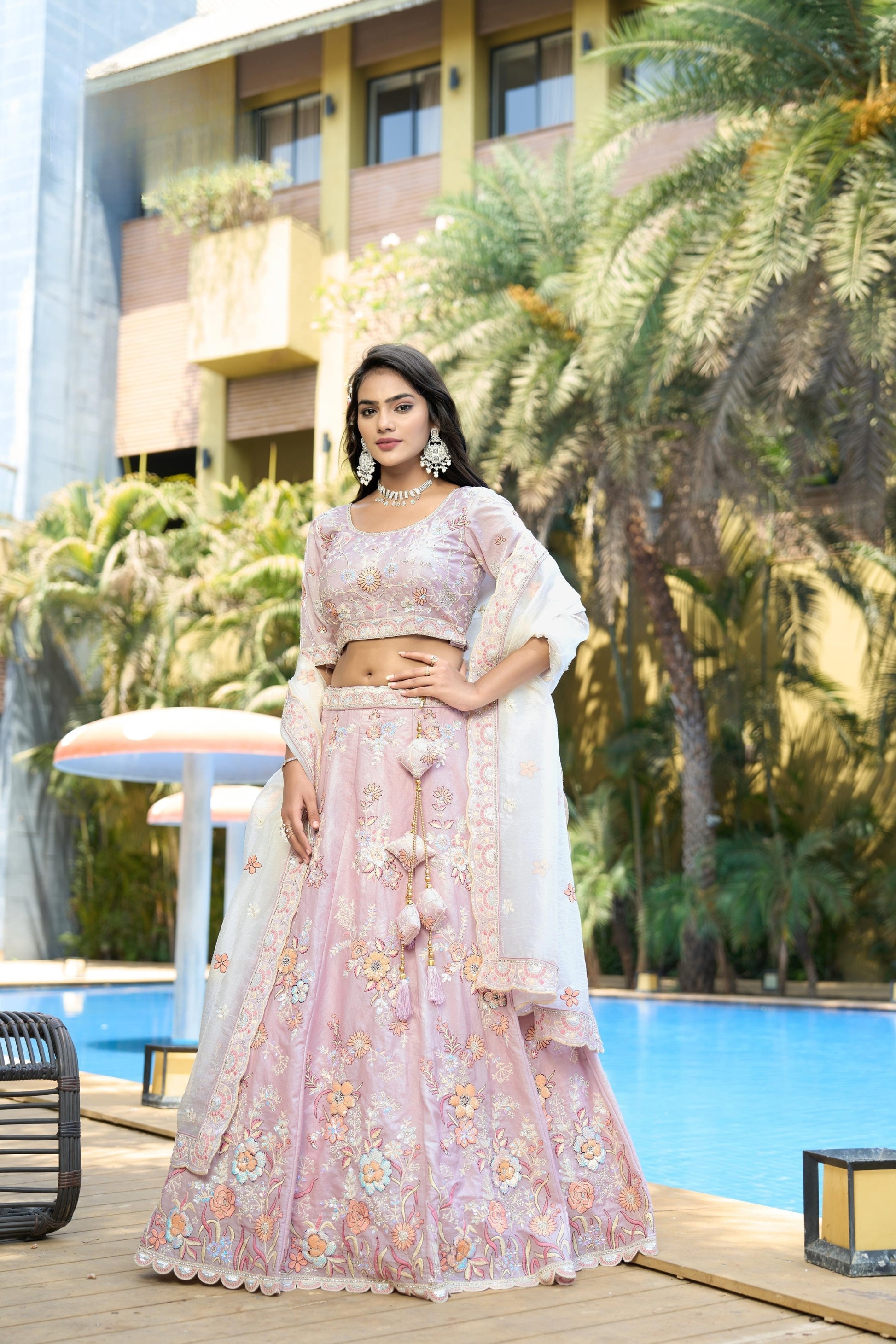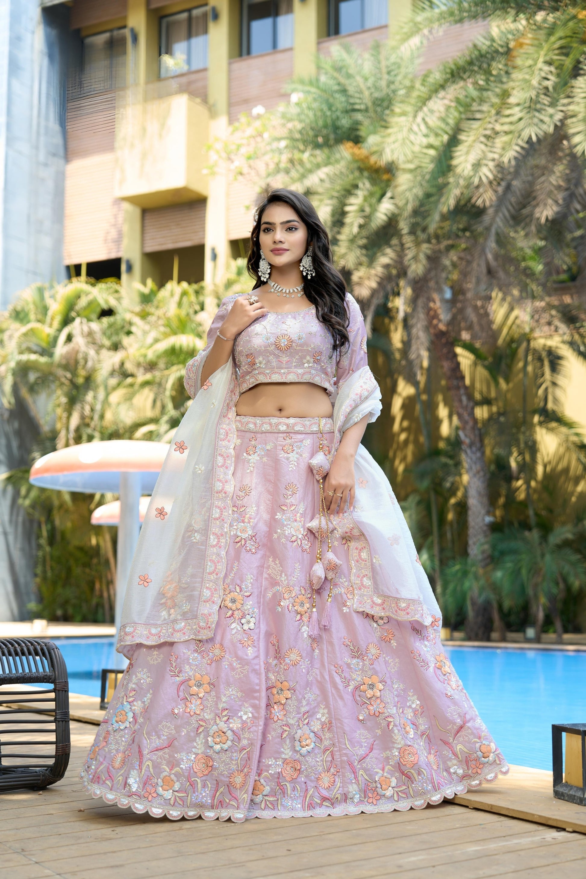 Add a touch of grace to your festive wardrobe with this Wonderful Purple Embroidered Organza Lehenga Choli with Dupatta for Wedding, designed to make you shine at weddings, receptions, and special occasions. The soft pastel pink lehenga is beautifully adorned with intricate floral embroidery, sequins, and threadwork, giving it a luxurious and feminine charm. The matching embroidered blouse enhances the elegance of the outfit, while the delicate dupatta with floral motifs and embroidered lace borders completes the ensemble. Perfect for bridesmaids, sangeet nights, and festive celebrations, this lehenga choli combines modern pastel trends with timeless traditional craftsmanship.